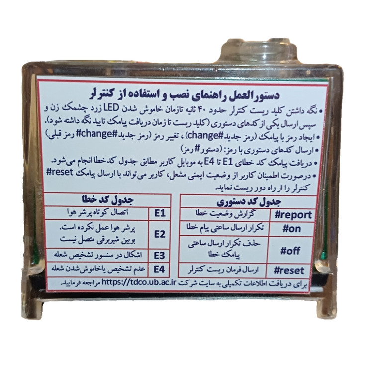 در زمان عملکرد عادی، سنسور UVZ شعله را پایش میکند و در صورت بروز هر گونه اختلال در احتراق، افت فشار هوا یا قطع جریان شعله، کد خطای دقیق از طریق پیامک به شمارههای تعریفشده ارسال میگردد. این ویژگی باعث میشود در محیطهای حساس مثل گلخانهها که هر دقیقه تأخیر در راهاندازی مجدد مشعل میتواند به محصول آسیب بزند، اپراتور بلافاصله از خطا مطلع شده و با ارسال یک پیامک ساده دستگاه را از راه دور ریاستارت کند.